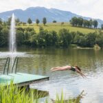 Im Sommer locken die private Liegewiese am See und garantierter Badespaß mit unvergleichlichem Bergpanorama.