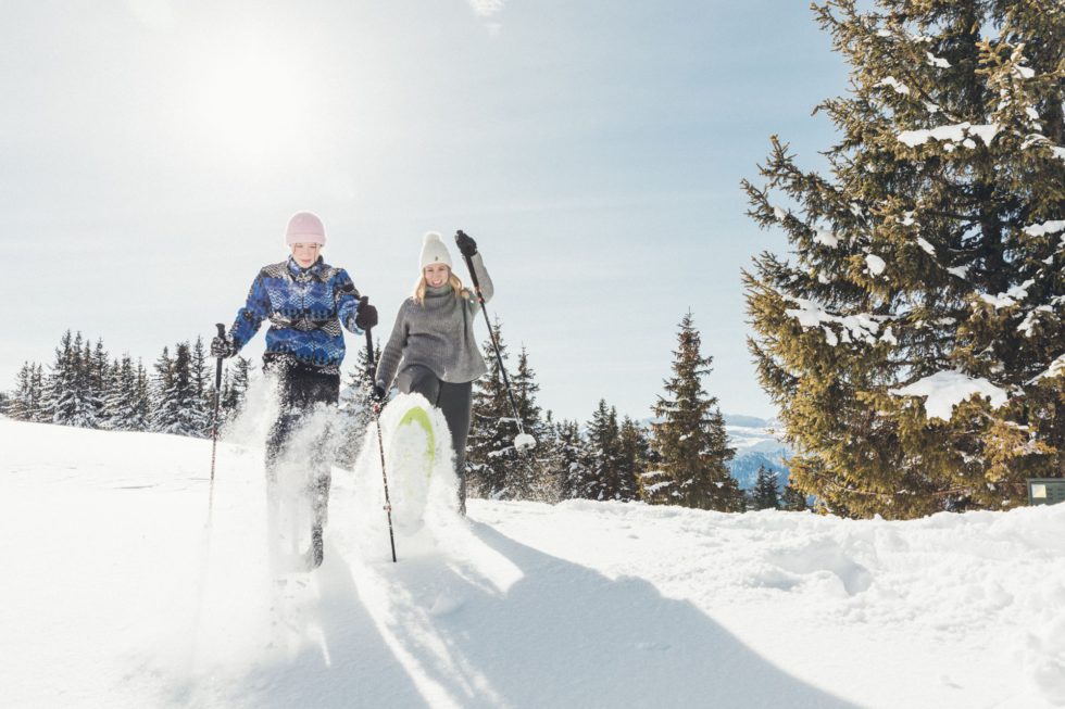 Kurzurlaub im Winter im 4-Sterne Wellnesshotel im Salzburgerland – Im warmen Wasserbett liegen, Massage genießen, saunieren und die verschneite Natur beobachten.