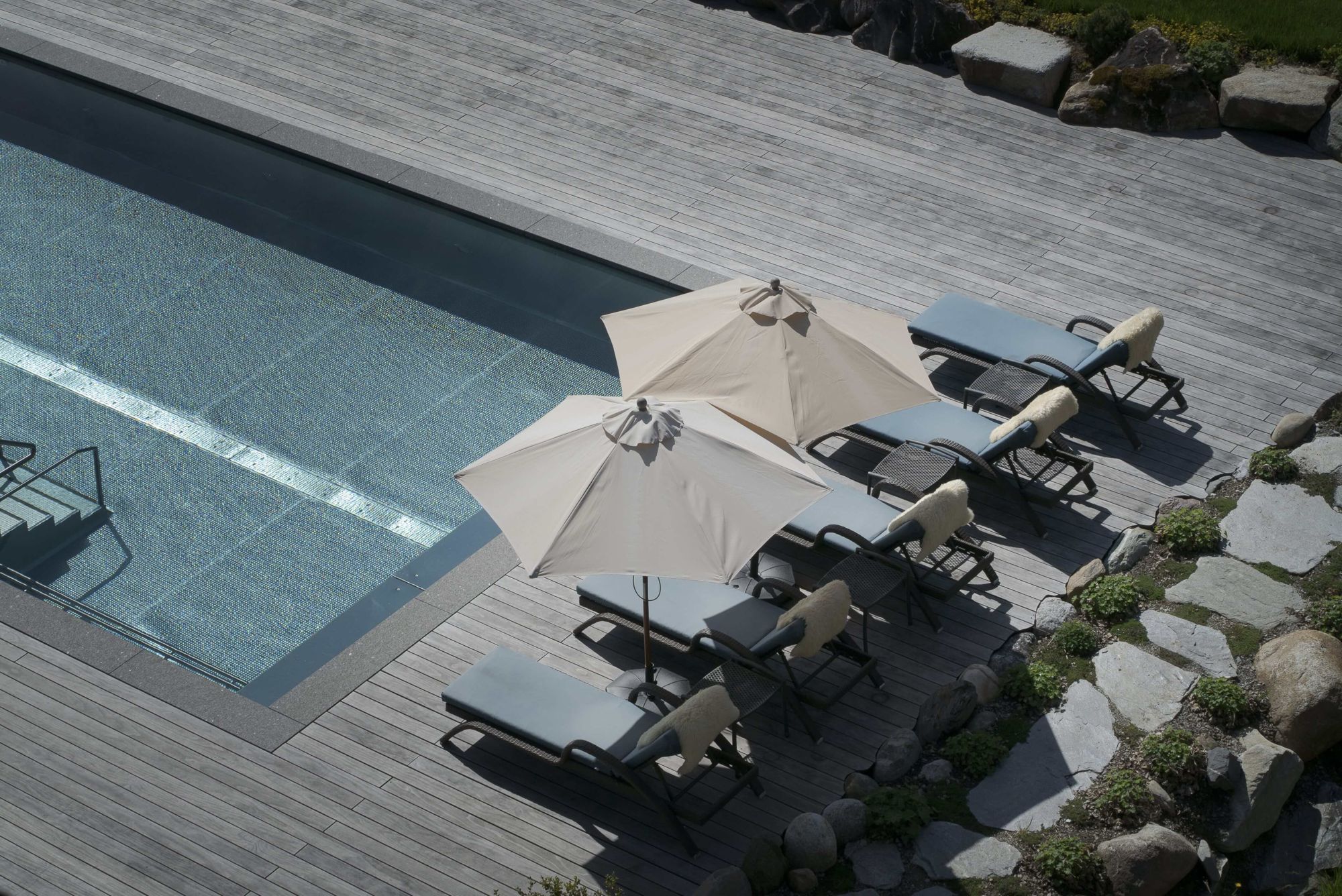 - Ein alpiner Zen-Garten mit Wassertreppe